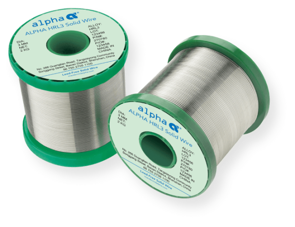 A low residue no-clean, lead-free cored solder wire designed for no-clean soldering applications with high SIR reliability and excellent spread characteristics. It is fast wetting so Excellent for high throughput with excellent solder joint formation with clear non-tacky residue.